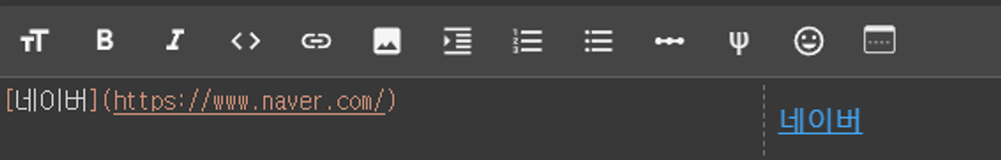 - [링크명](URL)을 사용하면 URL은 안보이게 링크를 만들 수 있다.