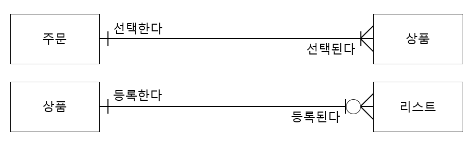 | 행위 엔터티 | - 2개 이상의 엔터티로부터 파생한다. - 데이터가 자주 변경되거나 증가할 수 있음 ex) 주문 내역, 이벤트 응모 이력 |