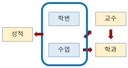 - 삽입 이상 : 교수가 학과에 소속되어 있음을 추가할 때 반드시 학생이 있어야 한다. (불필요한 정보 필요)